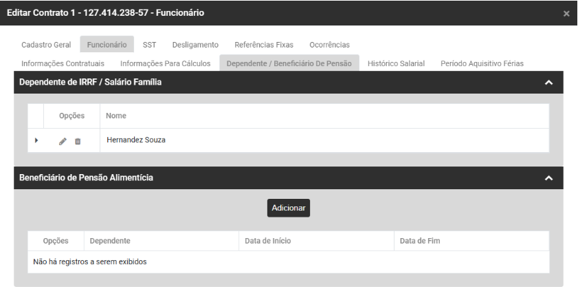 • Valor da Pensão - Este campo será habilitado se no indicativo da pensão você definiu Valor de Pensão Alimentícia