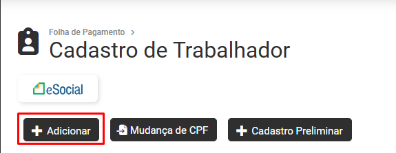 Ao acessar o Botão Adicionar o Módulo apresentará a tela para que você cadastre os Dados Pessoais do novo Trabalhador