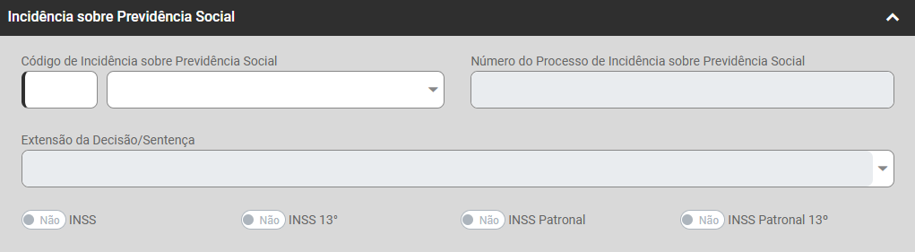 - Número do Processo de Incidência sobre Previdência Social - Caso haja um processo para esse evento na Previdência Social, o número do processo deverá ser informado
