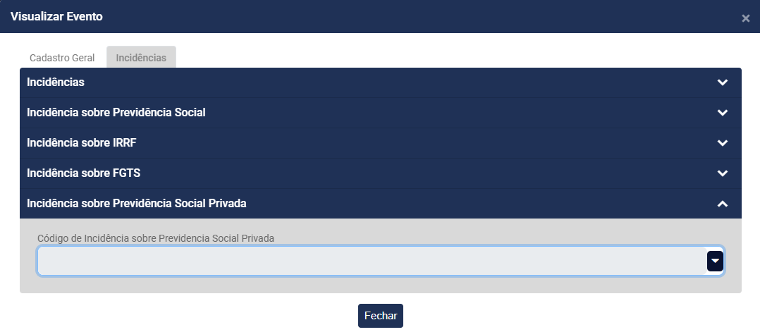 Caso esse evento tenha incidência sobre Previdência Social Privada informe o Código