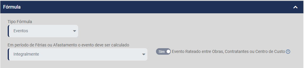 a) Com Fórmula - Será necessário o cadastro de uma fórmula para o cálculo do Evento que poderá utilizar variáveis ou referências em seus cálculos,