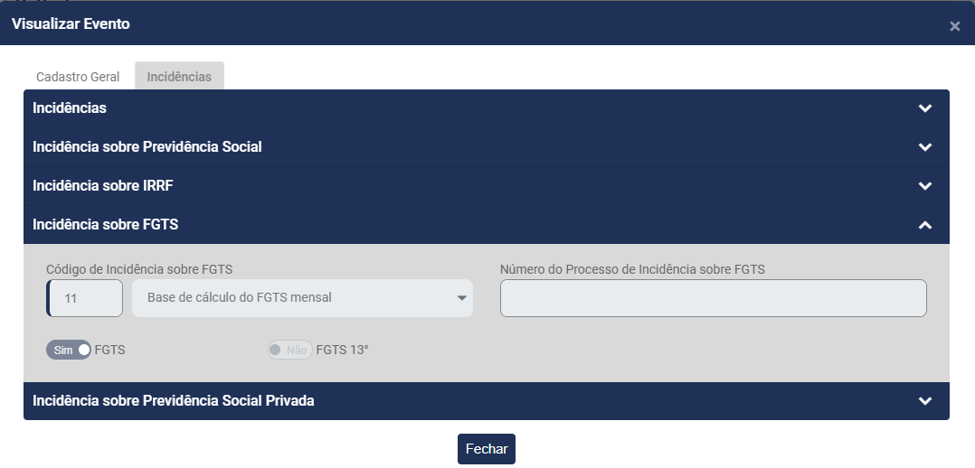 • Defina em seguida se a incidência desse evento é FGTS ou FGTS 13º Salário