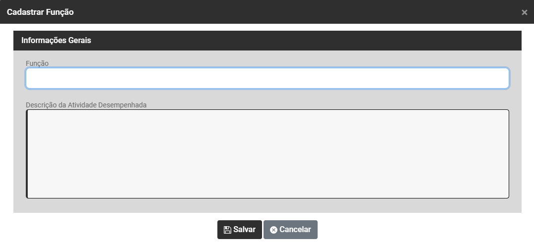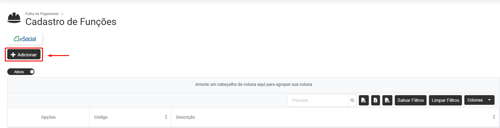 Para cadastrar a Função você deverá acessar o botão "Adicionar"