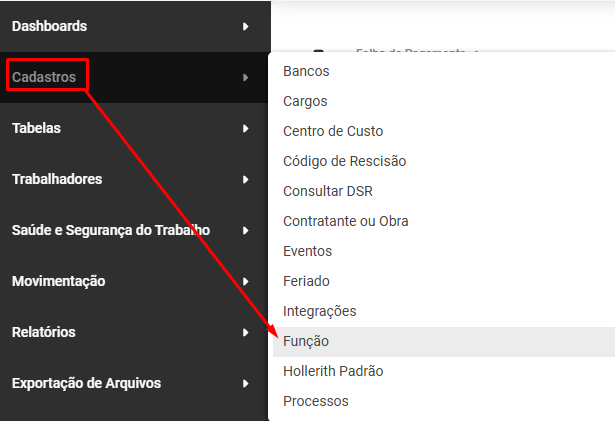 Para cadastrar as Funções dos Trabalhadores de sua Empresa, acesse o menu Cadastros>Função