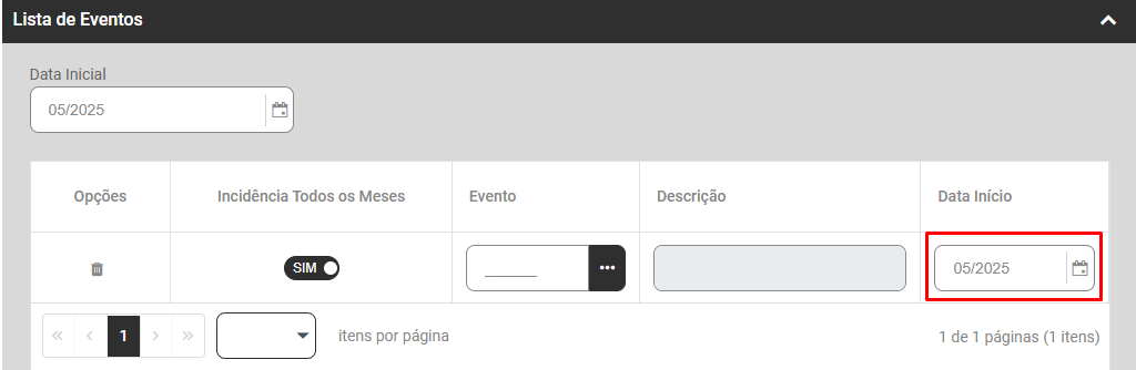 O Sistema irá habilitar o campo para que você relacione todos os eventos que irão compor esse Hollerith Padrão