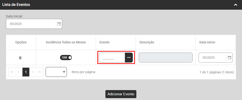 - Descrição do Evento - será preenchido automaticamente quando você definir o Código do Evento