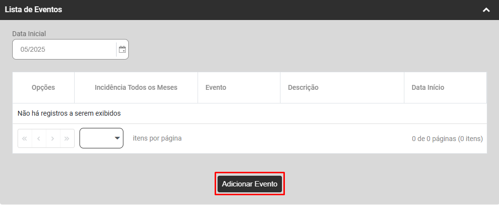 Clique no botão "Adicionar Evento"