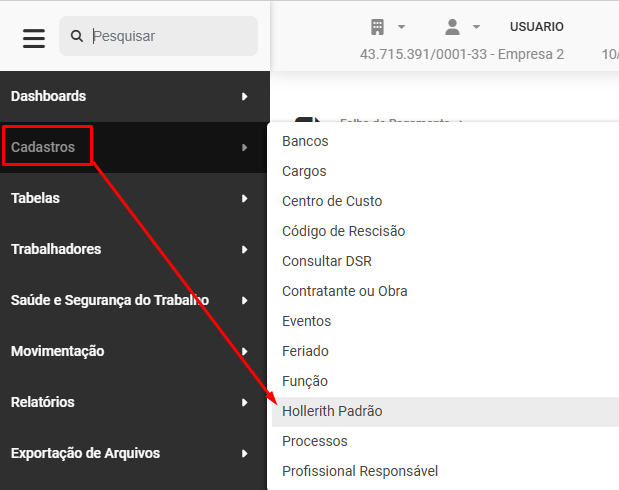 Para visualizar ou cadastrar os Holleriths Padrões você deverá acessar o menu Cadastros>Hollerith Padrão
