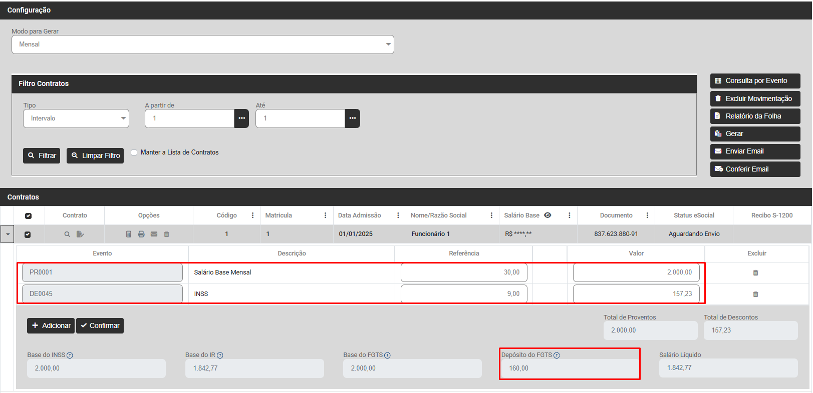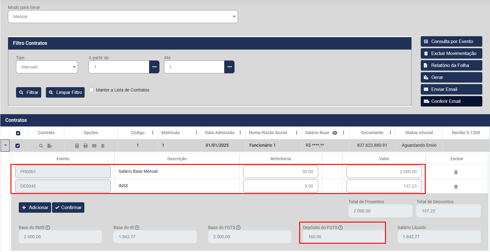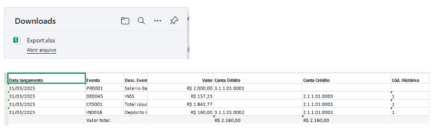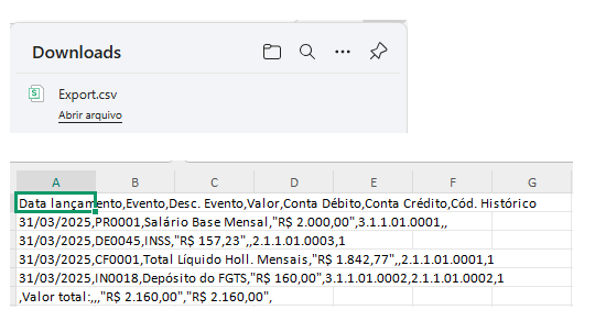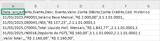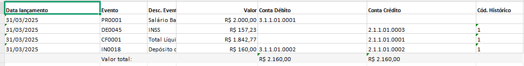 - Data de Referência - Mês de referência utilizado para buscar valores dos eventos integrados