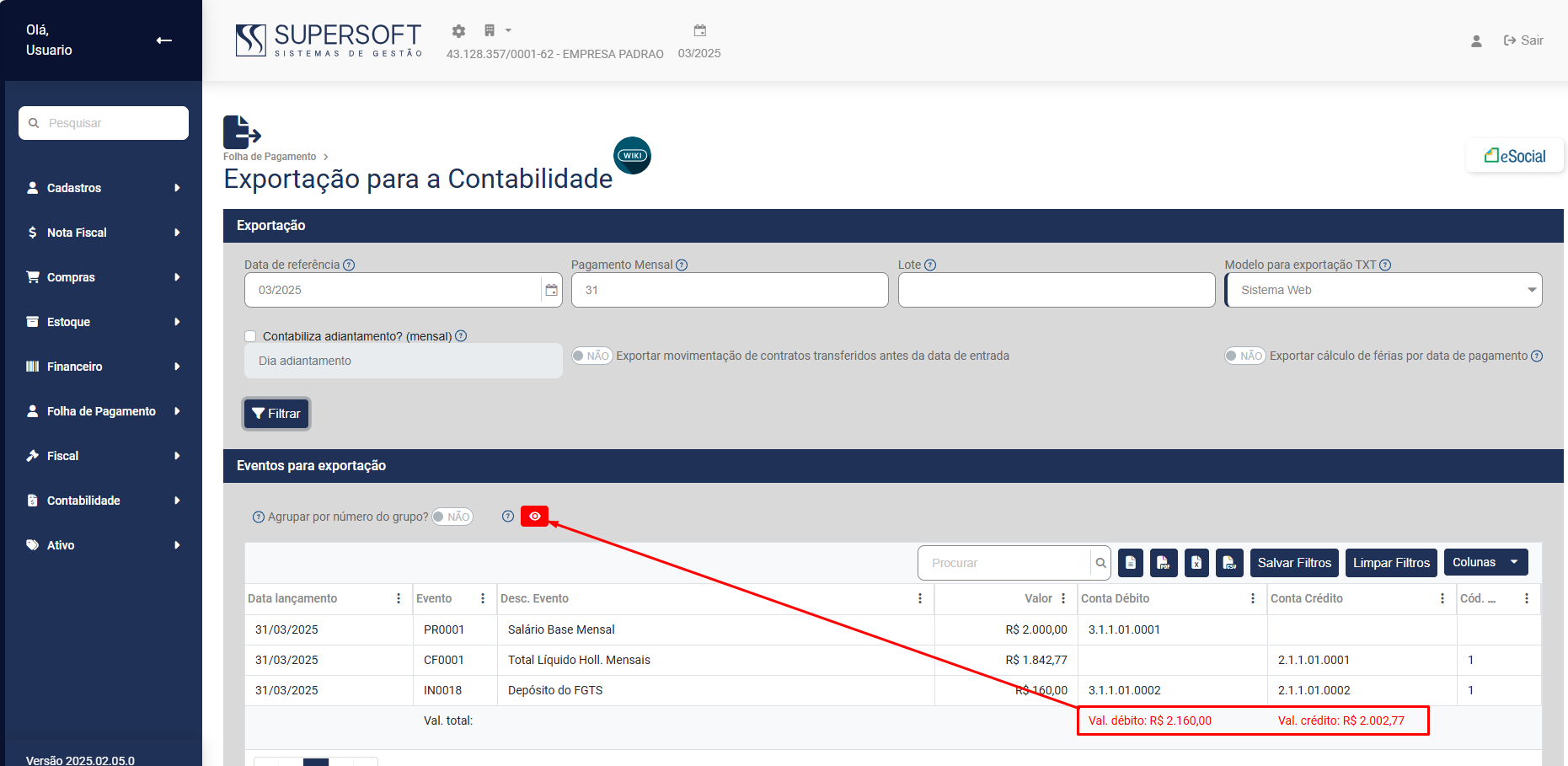 - Clique em Filtrar para que o Módulo apresente a Planilha Contábil para a conferência das informações