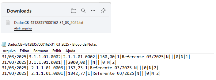 - Modelo para exportação TXT - Modelo que será aplicado no arquivo de exportação TXT.