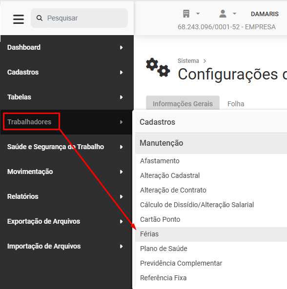 Você conseguirá visualizar os Períodos Aquisitivos de Férias, acessando também o menu Folha de Pagamento>Trabalhadores>Dados Contratuais