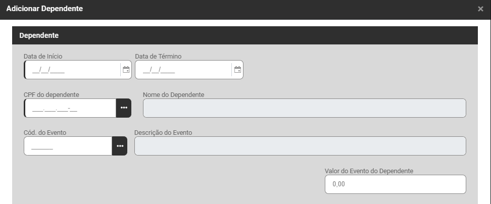 - Nome do Dependente - Será preenchido automaticamente quando definido o CPF do dependente