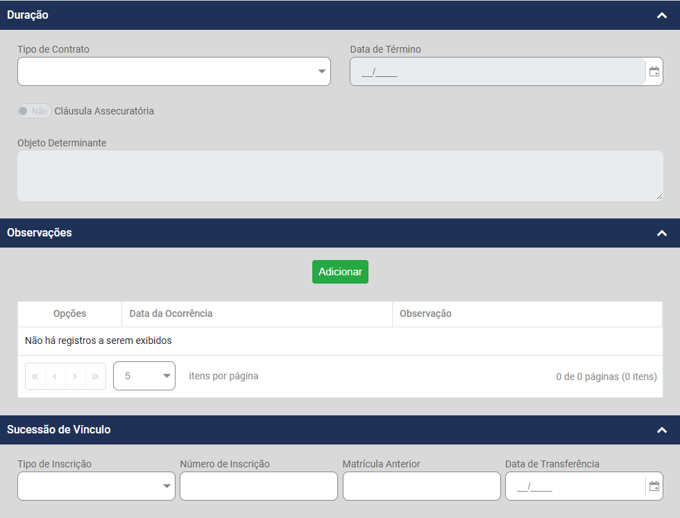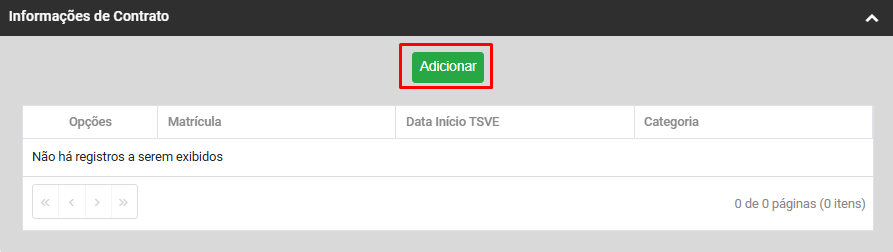 Na aba Informações de Contrato você deverá clicar novamente no botão Adicionar