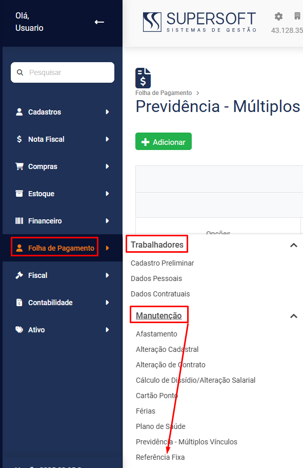 Para Cadastrar as Referências Fixas do Trabalhadores você deverá acessar o menu Folha de Pagamento>Trabalhadores>Manutenção>Referência Fixa