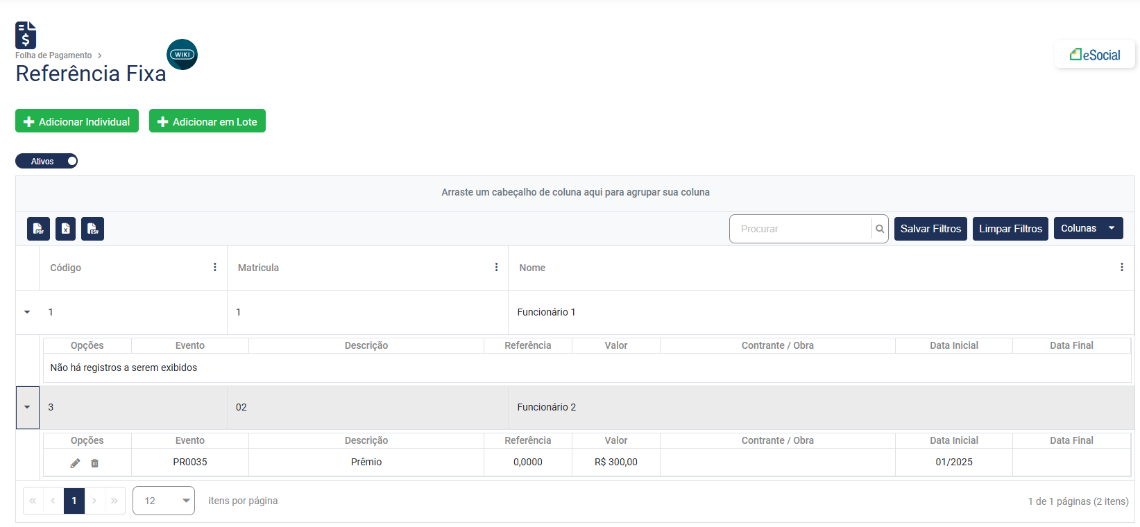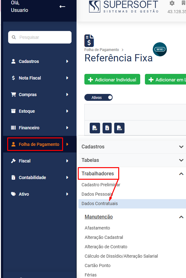 Depois que você cadastrar as Referências Fixas dos Trabalhadores, poderá visualizá-las também acessando o menu Folha de Pagamento>Trabalhadores>Dados Contratuais