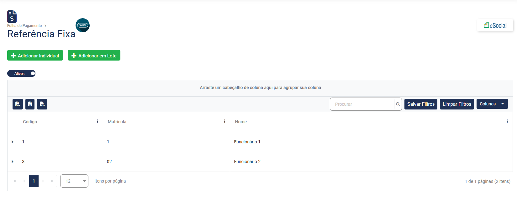Você conseguirá definir os Trabalhadores que terão a Referência Fixa cadastrada utilizando o Filtro por: