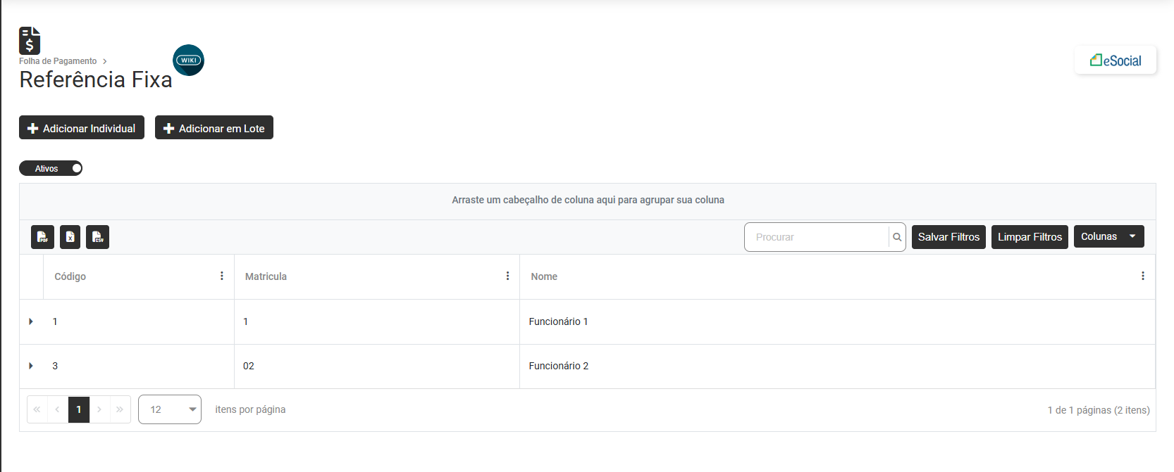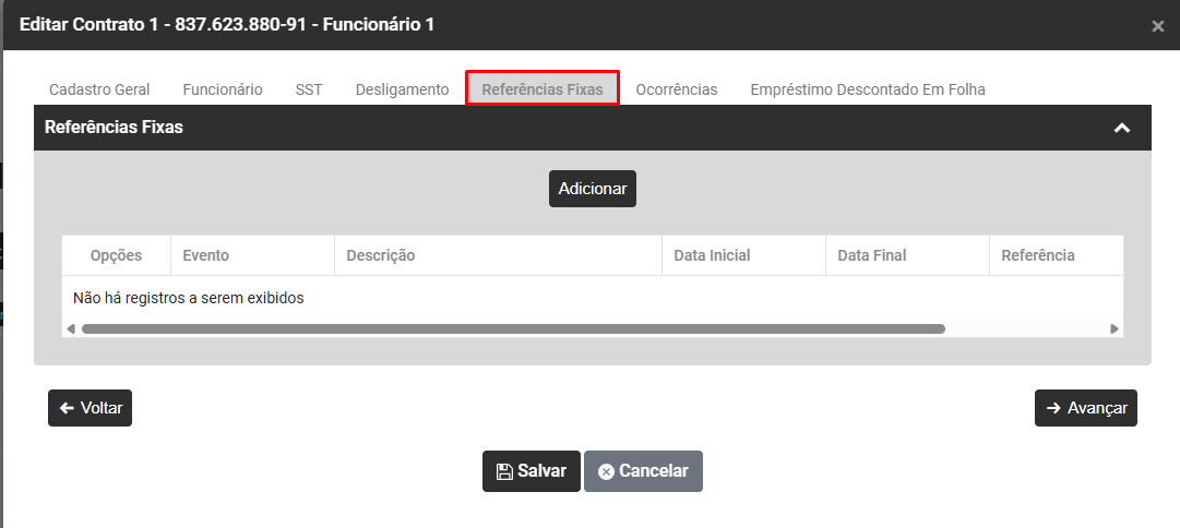 Depois que você cadastrar as Referências Fixas dos Trabalhadores, poderá visualizá-las também acessando o menu Folha de Pagamento>Trabalhadores>Dados Contratuais