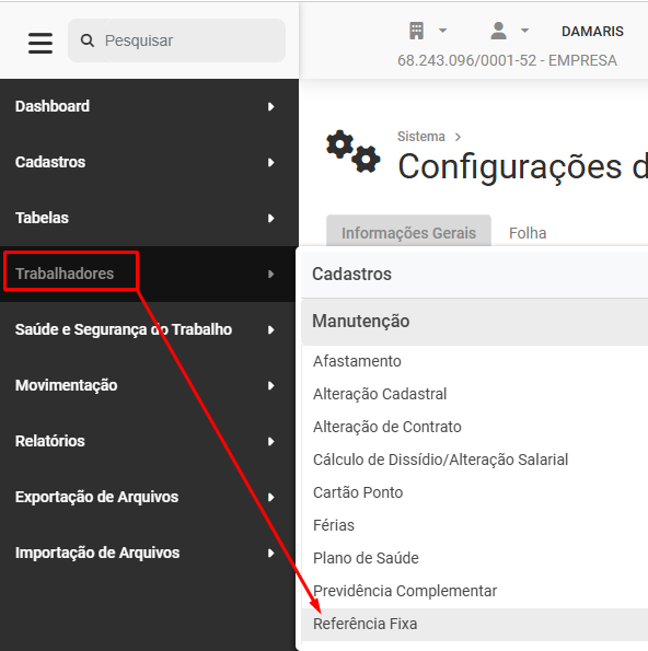 Para que você faça o cadastro da Referência Fixa Individualmente acesse o menu Folha de Pagamento>Trabalhadores>Manutenção>Referência Fixa