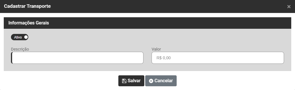 A qualquer momento você poderá Ativar ou Inativar um Transporte, para isso bastará clicar no botão específico com essa função.