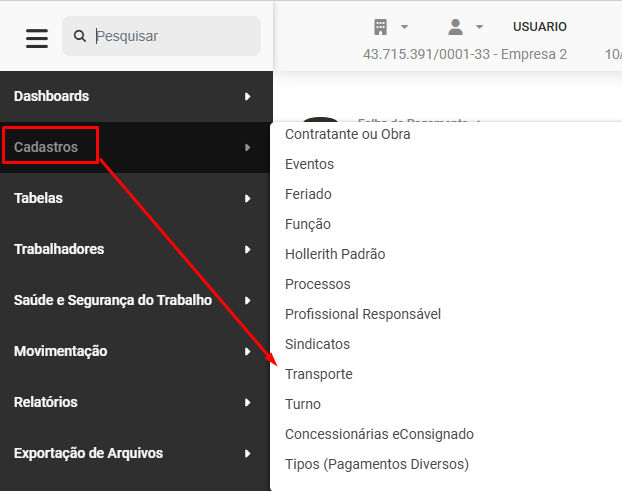 - Cadastro de Vale Transporte