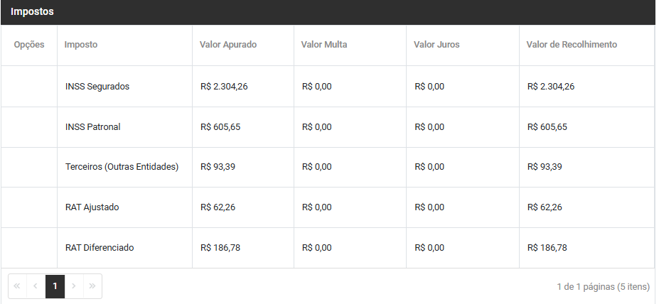 Com as informações de cada imposto apurado e que compõe a totalização da Guia de Recolhimento