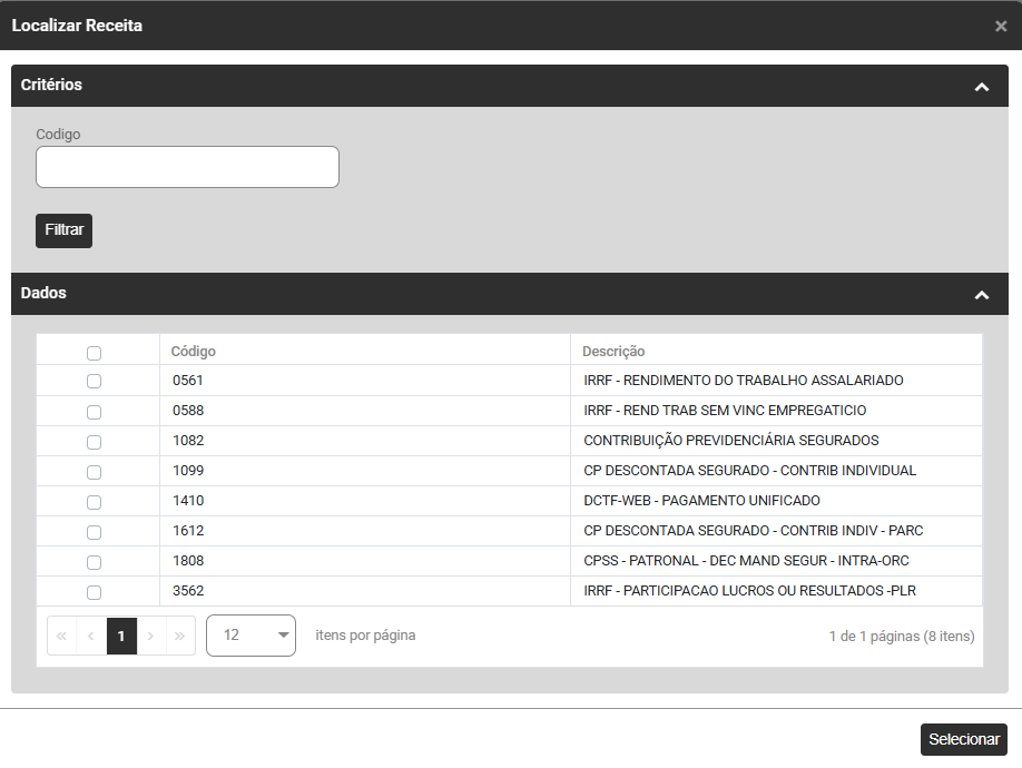 - Filtro por Código de Recolhimento