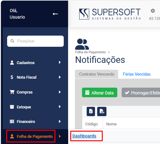 Para acessar o Dashboards do Módulo Folha de Pagamento, acesse o menu Folha de Pagamento>Dashboard