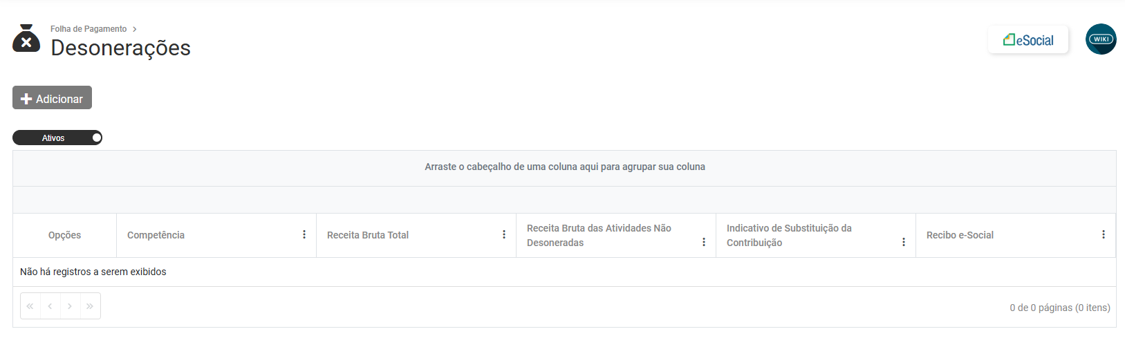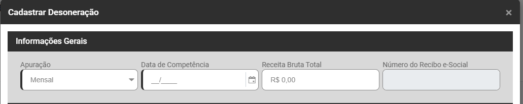 Ao clicar no botão Adicionar será apresentada a tela para que você informe os dados para a Desoneração da Folha de Pagamento