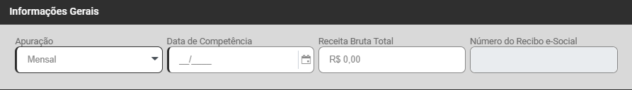 - Data de Competência - a máscara (MM/AAAA ou AAAA) deste campo será determinada após o campo Apuração ser definido