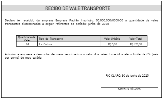 Emissão do Recibo de Vale Transporte