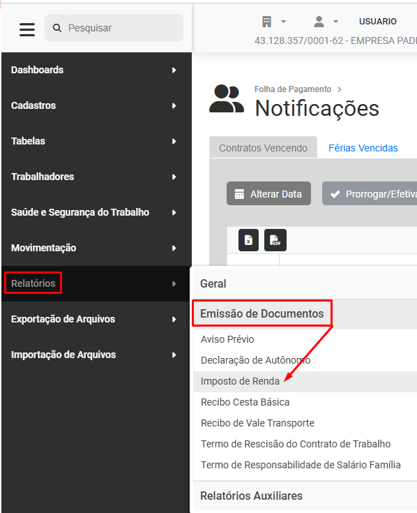 Para a impressão da Declaração de Encargos de Família para Fins de Imposto de Renda acesse o menu Relatórios>Emissão de Documento>Imposto de Renda