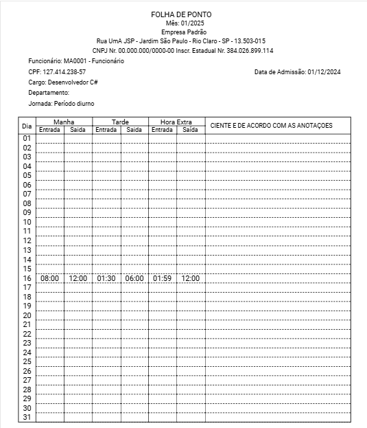 A Folha Ponto será Impressa conforme Solicitado