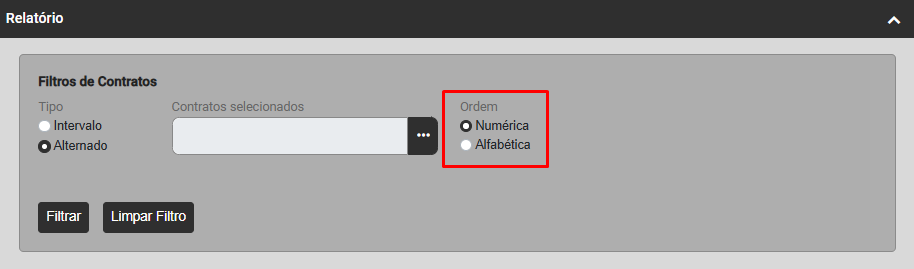 Será apresentada a tela para que você defina o Filtro a ser realizado que poderá ser: