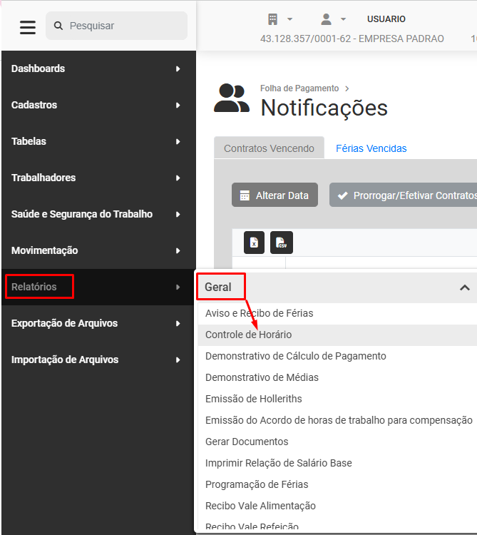 Emissão/Impressão Controle de Horário (Folha Ponto)