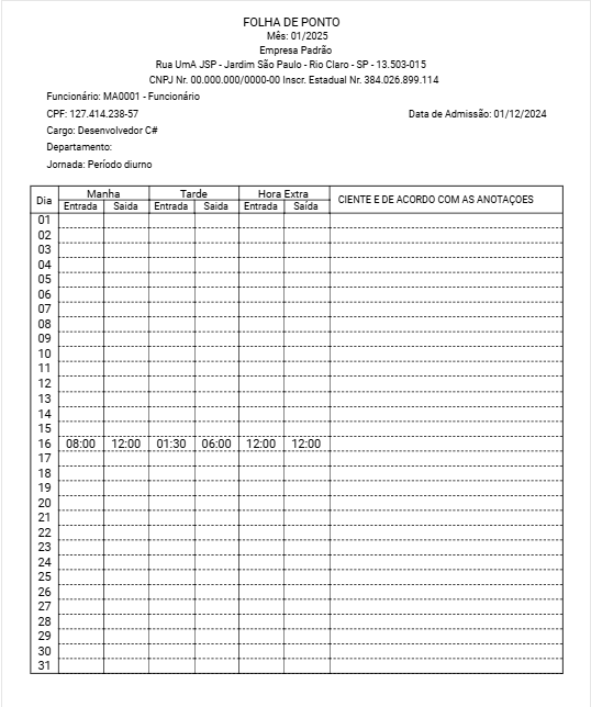 Impressão Controle de Horário (Folha Ponto)