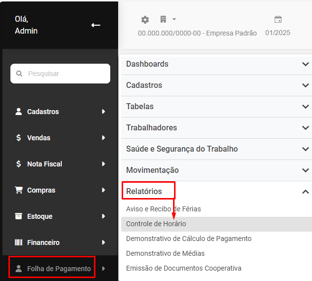Emissão/Impressão Controle de Horário (Folha Ponto)