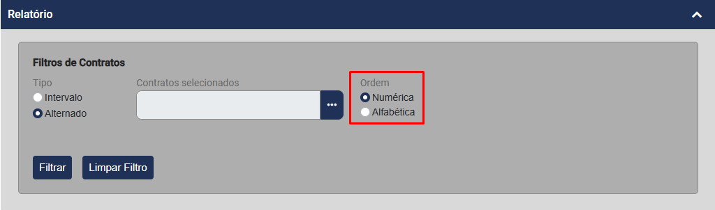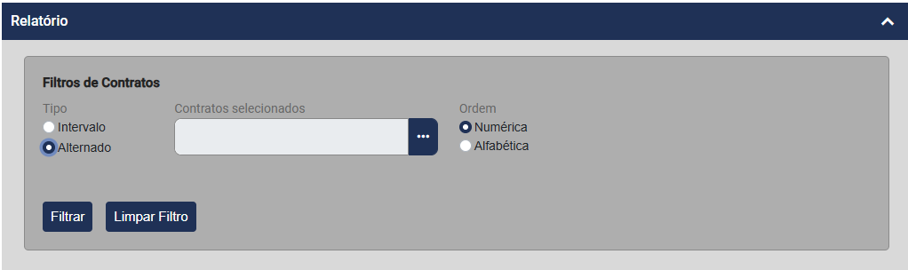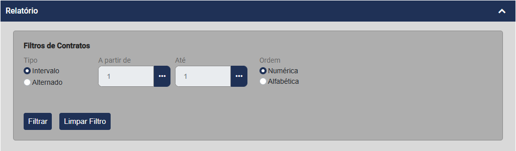 Será apresentada a tela para que você defina o Filtro a ser realizado que poderá ser: