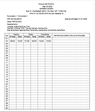 A Folha Ponto será Impressa conforme Solicitado
