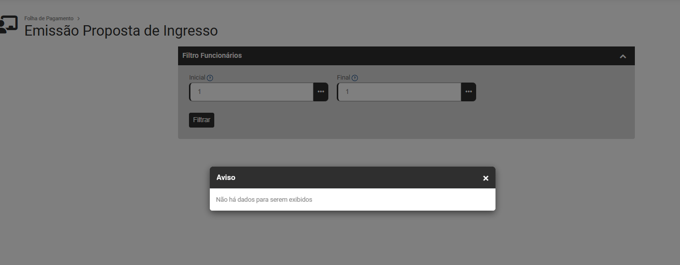 Na tela apresentada pelo Módulo, faça o filtro dos funcionário, definindo