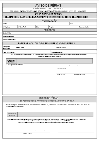 Clique em Imprimir e você terá o Aviso e Recibo de Férias