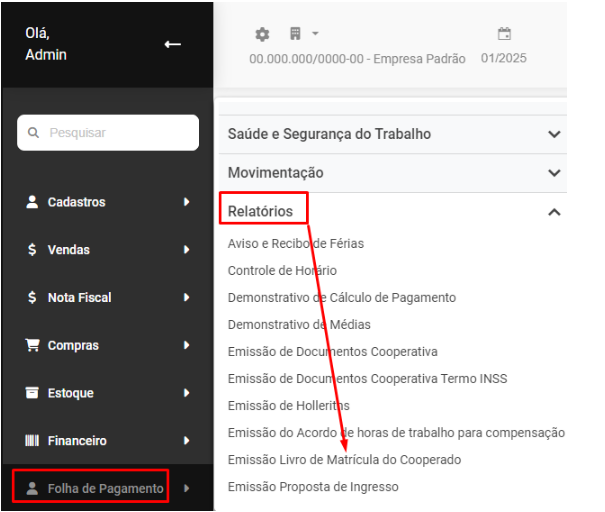 Para realização a impressão do Livro de Matrícula do Cooperado você deverá acessar o menu Folha de Pagamento>Relatórios>Emissão Livro de Matrícula do Cooperado