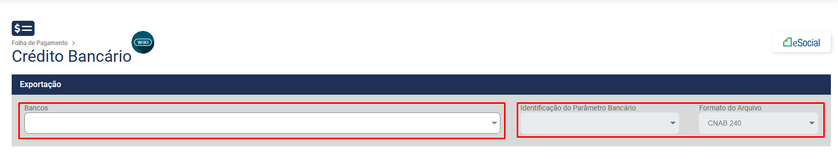 Para que você faça gere o arquivo de exportação de valores para o Banco, acesse o menu Folha de Pagamento>Exportação de Arquivos>Exportação Bancária