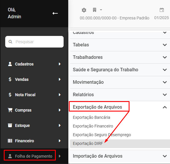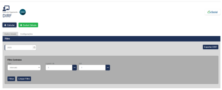..... Exportação para a DIRF (Declaração de Informações do Imposto de Renda Pessoa Física) - menu oculto