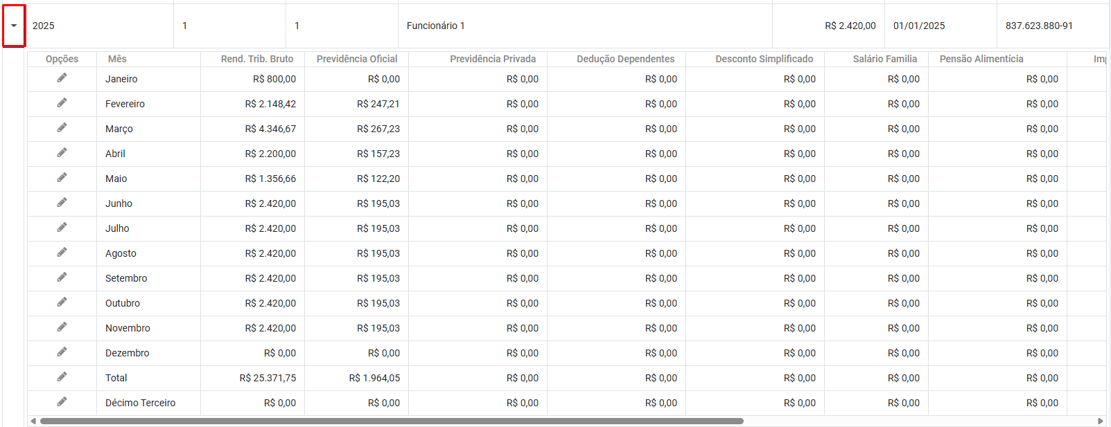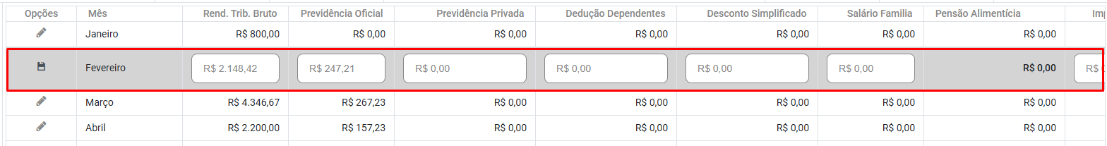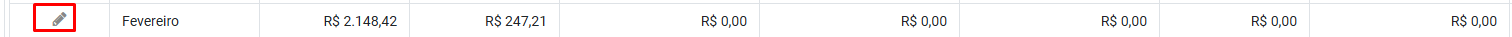 Se houver necessidade de editar alguma das informações calculadas automaticamente pelo Módulo, clique no botão com o desenho do lápis, existente do lado esquerdo do mês que será editado