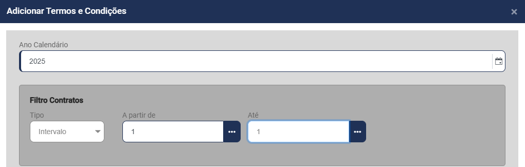 - Tipo - filtre por intervalo de contratos, contratos alternados ou individual