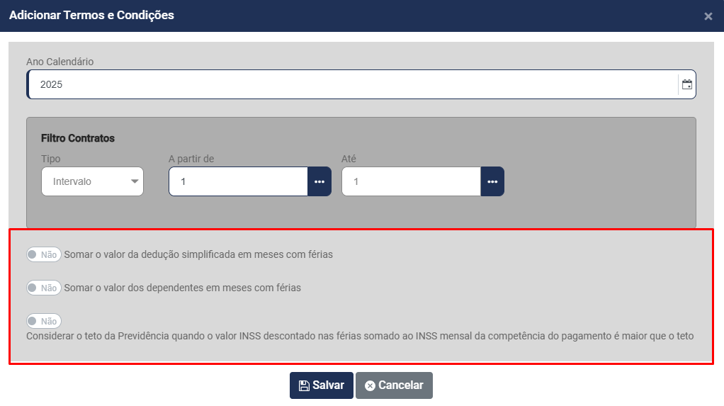 - Considerar o teto da Previdência quando o valor INSS descontado nas férias somado ao INSS mensal da competência do pagamento é maior que o teto