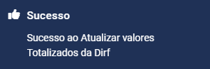 O Módulo apresentará a mensagem Sucesso ao Atualizar Valores Totalizados da DIRF