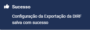 Quando você Salvar as Configurações para Exportação da DIRF o Módulo apresentará mensagem informando que a Configuração da Exportação da DIRF foi salva com sucesso