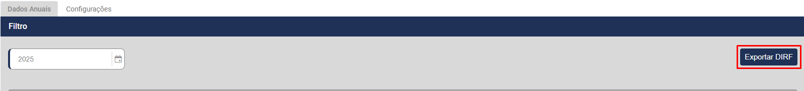 Para realizar a Exportação da DIRF você deverá acessar o Botão existente na parte Superior Direita da Tela